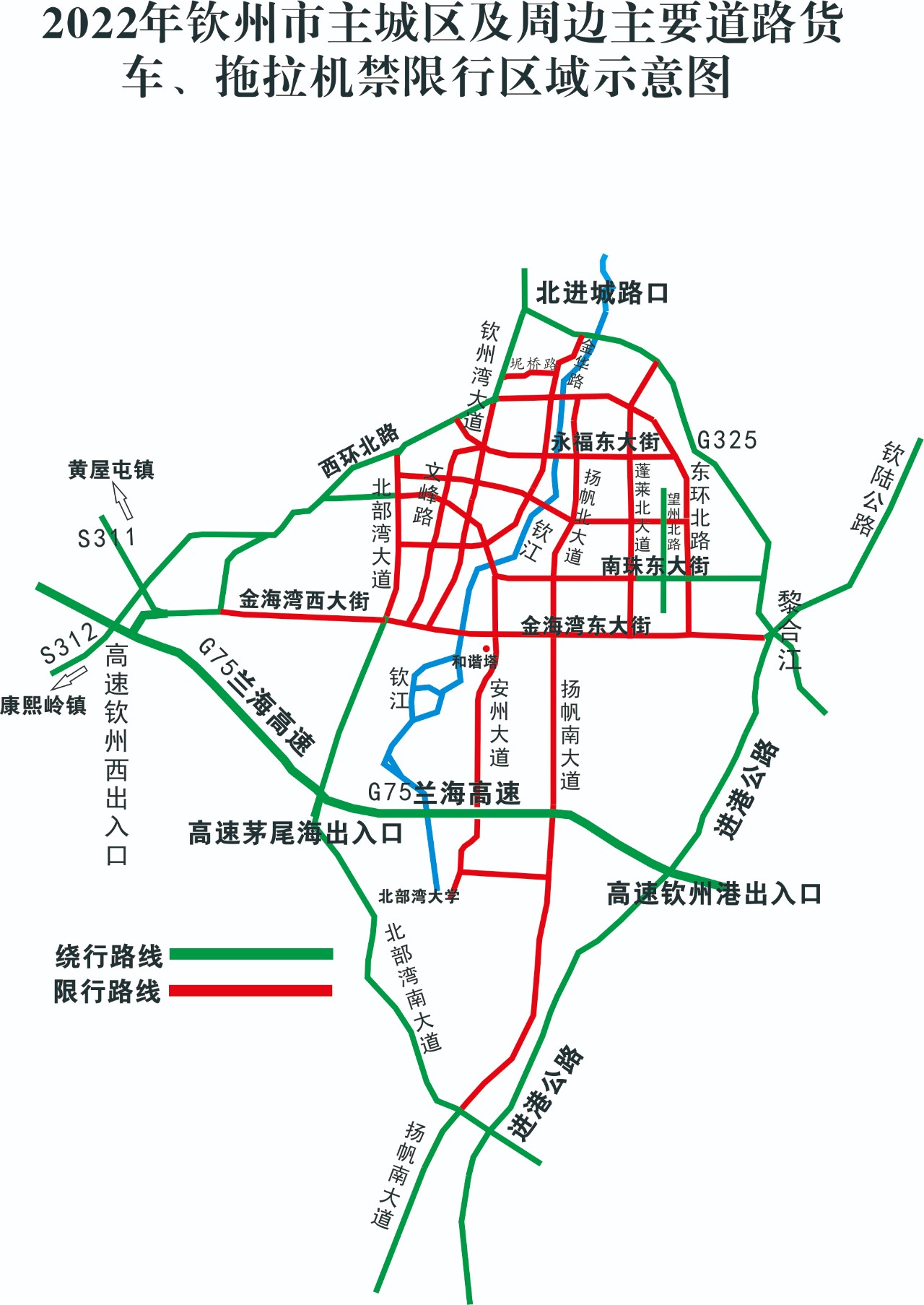 附件:2022年钦州市主城区及周边主要道路货车、拖拉机禁限行区域示意图