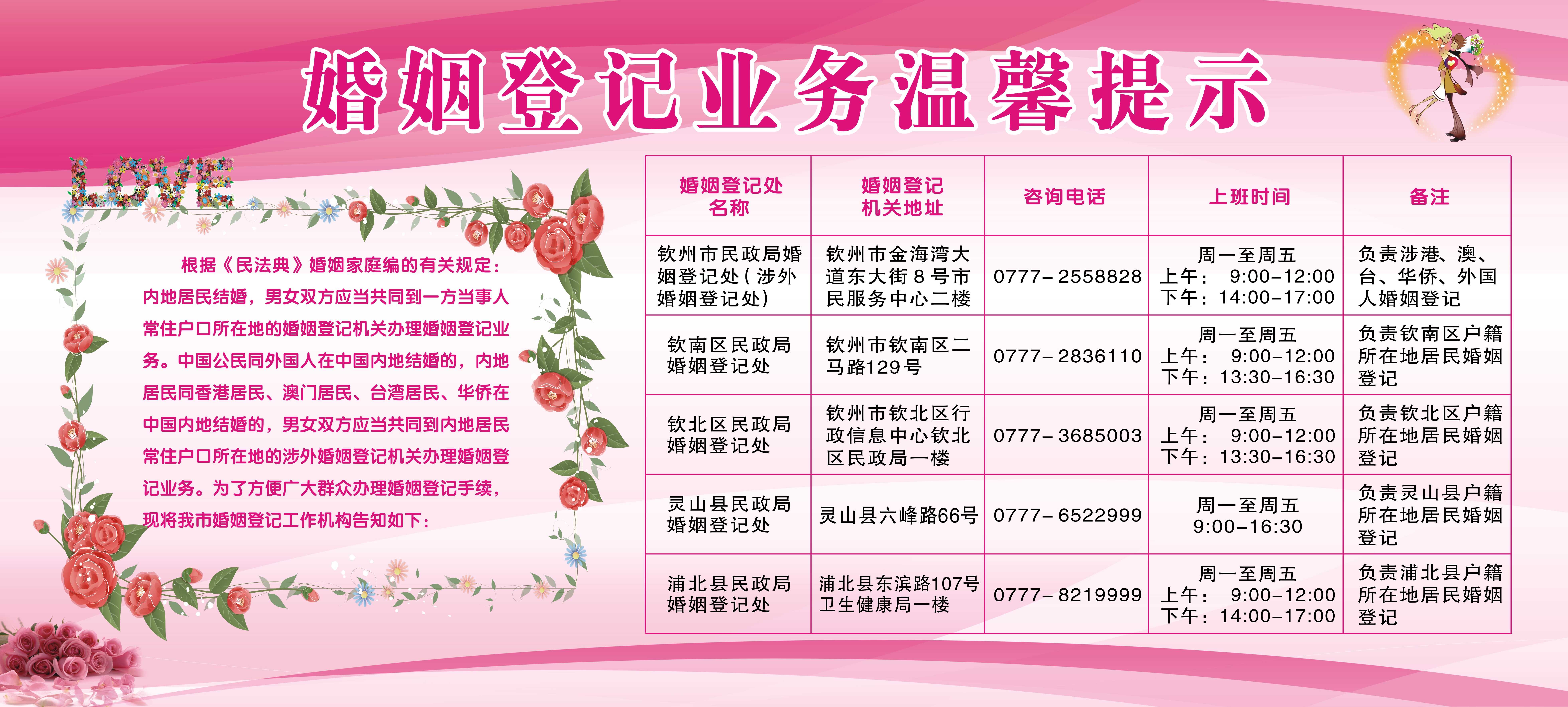 钦州市婚姻登记工作机构目录