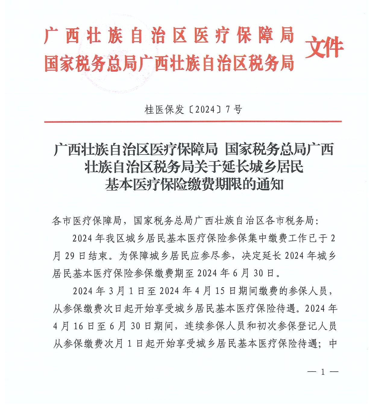 广西壮族自治区医疗保障局 国家税务总局广西壮族自治区税务局关于延长城乡居民基本医疗保险缴费期限的通知