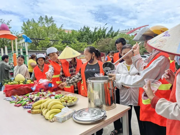 活动现场,参与者有序签到后,工作人员为大家发放随即小礼品、环保宣传袋及惊喜转盘参与券。社区准备了水果、糖果、饼干和糖水等食品供居民自由用取,在轻松愉快的交流中,拉进邻里关系。