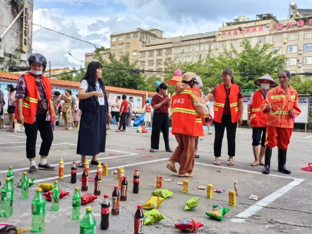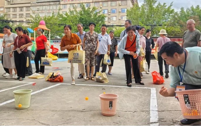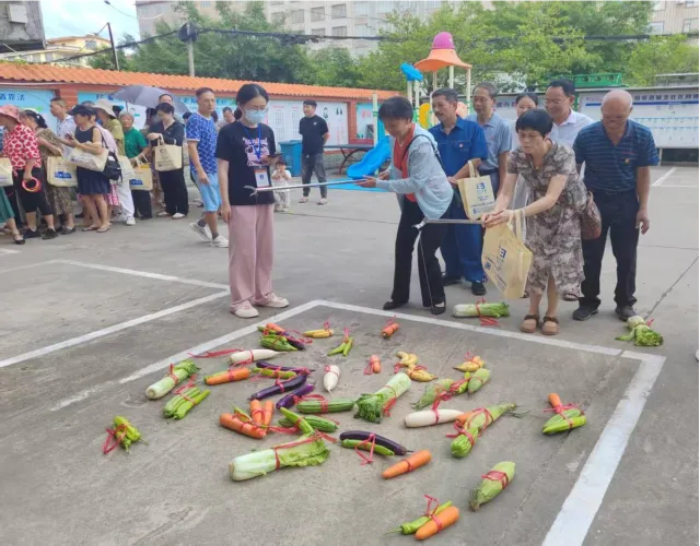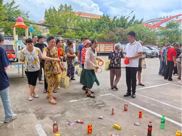本次活动紧密围绕新时代文明实践移风易俗的主题,精心设置了四个富有教育意义且趣味横生的游戏环节:惊喜转盘、“圈”定好运、快乐钓蔬、趣味投“乒”。在惊喜转盘环节,每位到场居民均可参与一次,确保人人有奖。“圈”定好运套圈活动现场气氛热烈,居民们有序排队参与,套中礼品时现场笑声不断。快乐钓蔬限时一分钟,参与者认真投入,在垂钓中体验劳动的乐趣和收获的喜悦,传递珍重粮食、尊重劳动的价值观。趣味投“乒”环节,参与者将乒乓球投入垃圾桶,在欢声笑语中向居民传递垃圾分类、不乱丢垃圾健康文明的生活态度。