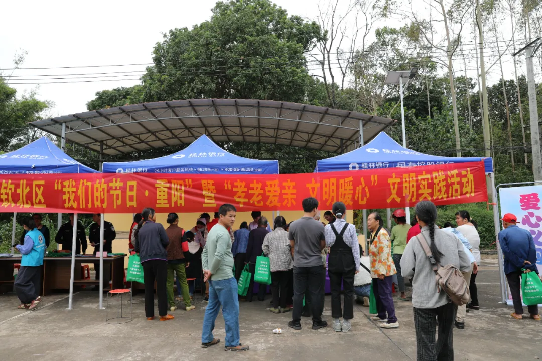 岁岁重阳,今又重阳。10月28日,区委宣传部、区文明办、区卫生健康局、公安钦北分局等单位及桂林银行钦州钦北区支行等企业联合在大垌镇大塘村委卜祝村开展2025年钦北区“我们的节日·重阳”暨“孝老爱亲 文明暖心”文明实践活动,用贴心服务与真情陪伴,为乡村老人送上节日暖意。