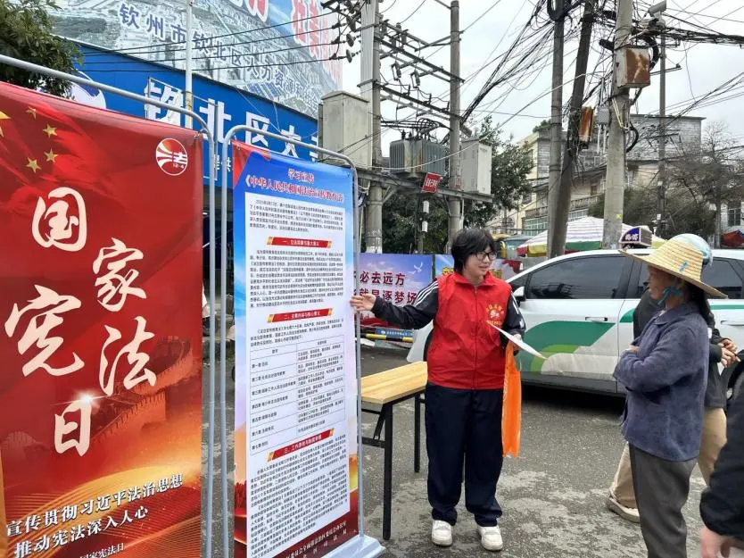 活动通过悬挂“钦北区开展‘学习宣传贯彻习近平法治思想,推动宪法深入人心’主题宣传活动”横幅、设置咨询台、发放宣传资料、展出2个宪法宣传海报的方式向群众宣传国家宪法日、法治宣传教育法等有关法律法规知识。同时,工作人员还就如何防范电信诈骗等群众关心的民生热点问题等进行解答,引导群众依法表达诉求、维护权益,现场群众参与度高。本次活动各单位共发放宪法、反诈、交通安全、禁毒、民族团结、预防一氧化碳中毒、安全使用燃气等法治宣传资料、宣传袋子等1500份。