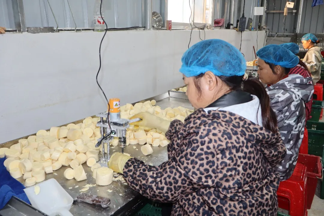 走进大寺镇木薯收购点,工人们分工协作,熟练地对木薯进行去皮、分拣、切块去芯、颗粒成装、真空打包。这些初加工产品通过顺丰等快递发往上海等全国各大城市,部分还远销海外,满足知名品牌连锁店、商超及外贸订单需求。“我们每天加工3万斤新鲜木薯,能提供60多个务工岗位,工人日收入在80至150元不等。”公司负责人黄文强介绍,产业发展让村民实现“家门口就业”,既照顾家庭又能增收。