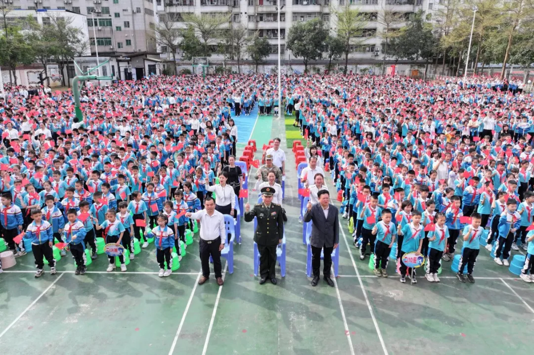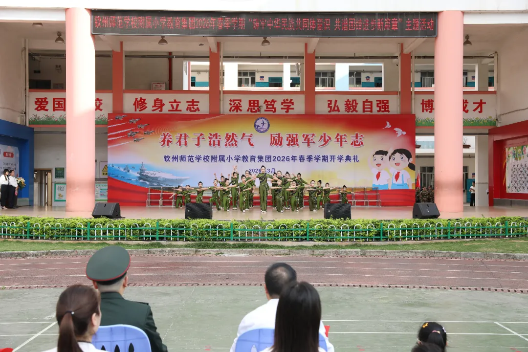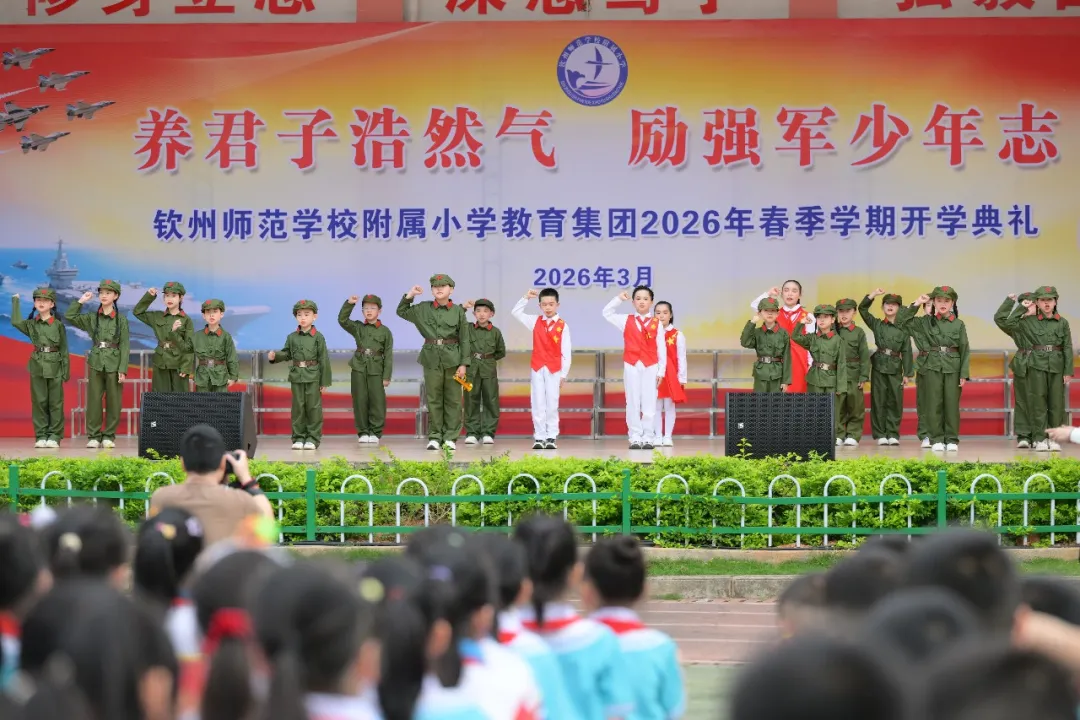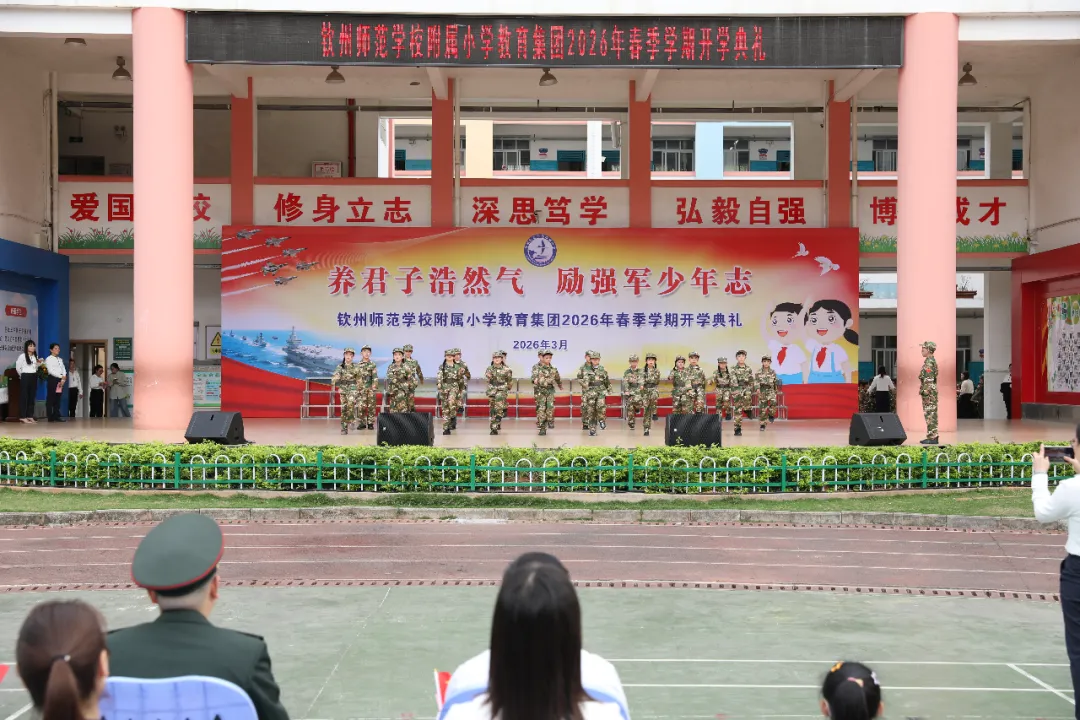 3月2日上午,一场别开生面的“开学第一课”在钦州师范学校附属小学教育集团(以下简称钦师附小)操场上隆重举行。钦州市钦北区人武部联合区委宣传部、区教育局等单位走进校园,与全校师生共同开启以“养君子浩然气 励强军少年志”为主题的春季学期开学典礼,将一抹亮丽的“迷彩绿”融入青春校园,在莘莘学子心中播撒下爱国报国的红色种子。