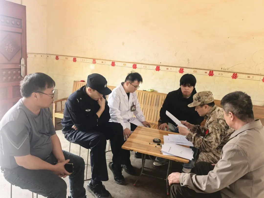 为深入学习贯彻习近平强军思想,高标准完成2026年春季征兵任务,筑牢兵员质量“首道防线”。2月25日由镇武装部牵头,联合派出所、卫生院等部门组成联合走访组,明确各部门职责分工;镇武装部负责统筹协调征兵政治考核工作,派出所负责对应征青年的身份信息、违法犯罪记录等进行核查,卫生院负责对应征青年的既往病史、家族遗传病等情况进行询问和复检。