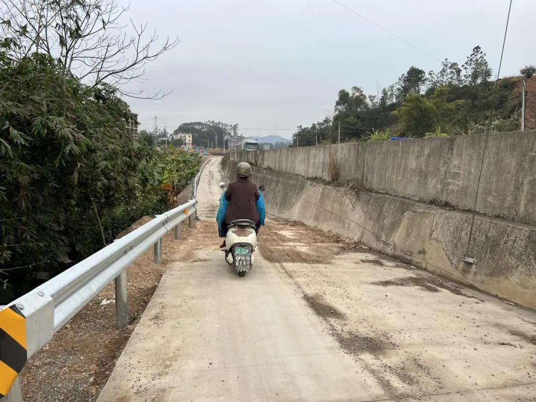 让“期盼”成“现实”,精准施策改善“行路难”。为精准破解安全难题,工作组多次联合上级交管部门赴现场实地调研,最终敲定“封闭隐患路口+新建便民通道”的闭环解决方案。道路全程采用水泥硬化处理,路面设计宽度为3米,全长160米,专供行人和二轮车通行;同时配套设置反光警示标志、减速带和安全护栏,全方位筑牢通行安全防线。