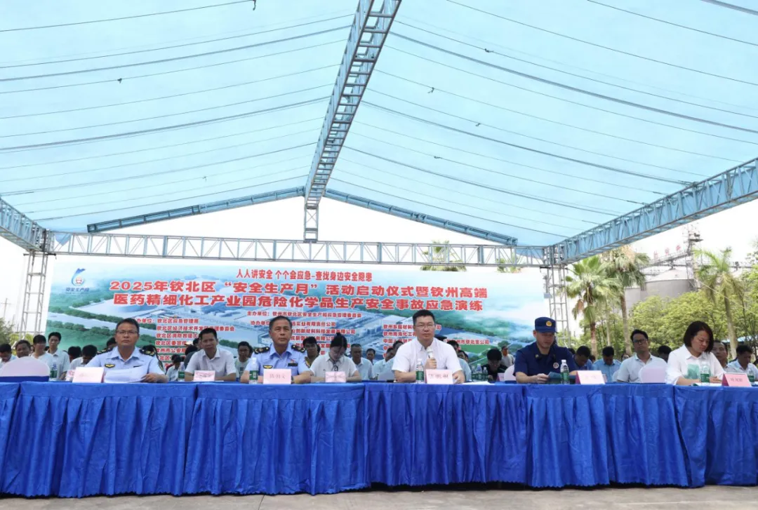 钦北区各镇(街道)及区安全应急委各成员单位、钦州高端医药精细化工产业园各企业共200余人参加启动仪式并观摩演练。
