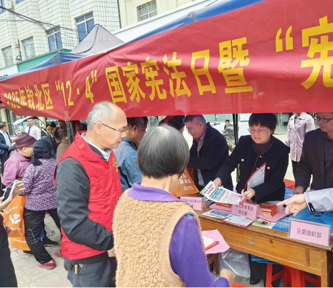 为深入学习贯彻党的二十大和二十届四中全会精神,大力加强宪法宣传教育,弘扬宪法精神,12月4日上午,区人大办、区政协办、区委组织部、区委宣传部、区委政法委、区委依法治区办、区法院、区检察院、区司法局、公安钦北分局、平吉镇人民政府等单位,在平吉镇开展2025年“12·4”国家宪法日暨“宪法宣传周”集中宣传活动,本次活动主题为“学习宣传贯彻习近平法治思想,推动宪法深入人心”。区人大常委会副主任冯博、区政协副主席陈冰参加宣传活动。