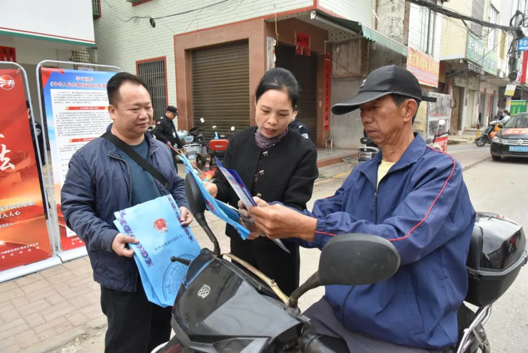活动现场,各单位的普法志愿者通过展出海报、发放宣传资料、现场解答咨询等方式面对面向群众宣传宪法、民法典、法律援助法、未成年人保护法、中华人民共和国妇女权益保障法、反邪教、预防电信诈骗,预防养老诈骗等法律法规。此外,本次活动还邀请到广西众源律师事务所韦福年律师到场为群众免费提供法律咨询。活动现场氛围浓厚,群众参与度高,本次活动共发放各类宣传资料、物品8000多份,解答群众咨询70余人次。