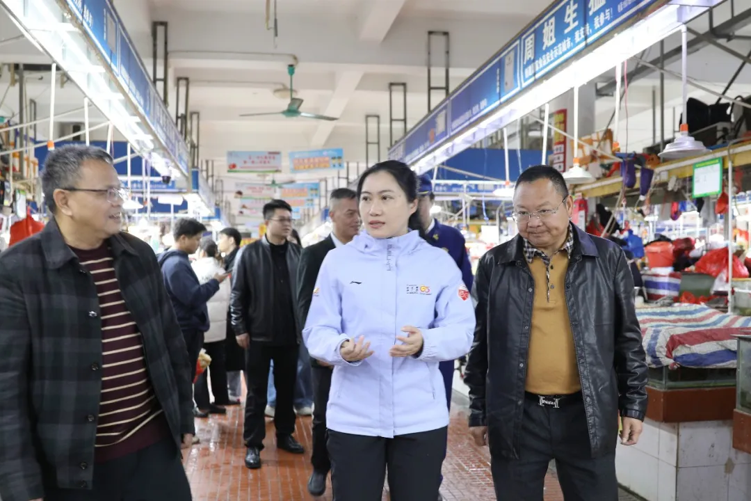 来到鸿发市场,市场内客流如梭,有条不紊,邓洁丽实地查看了市场摊位,与市场负责人及商户面对面交流,详细了解市场经营、销量价格、质量管控、消防安全等情况。她指出,市场节日期间人流量大,安全责任重于泰山,有关部门与市场经营主体要完善应急疏散指引和预案,加强安全培训和演练,确保关键时刻能够快速响应、有效处置,同时要严把食品安全关,备足货源保障节日供应,营造安全、有序、舒适的节日购物环境。