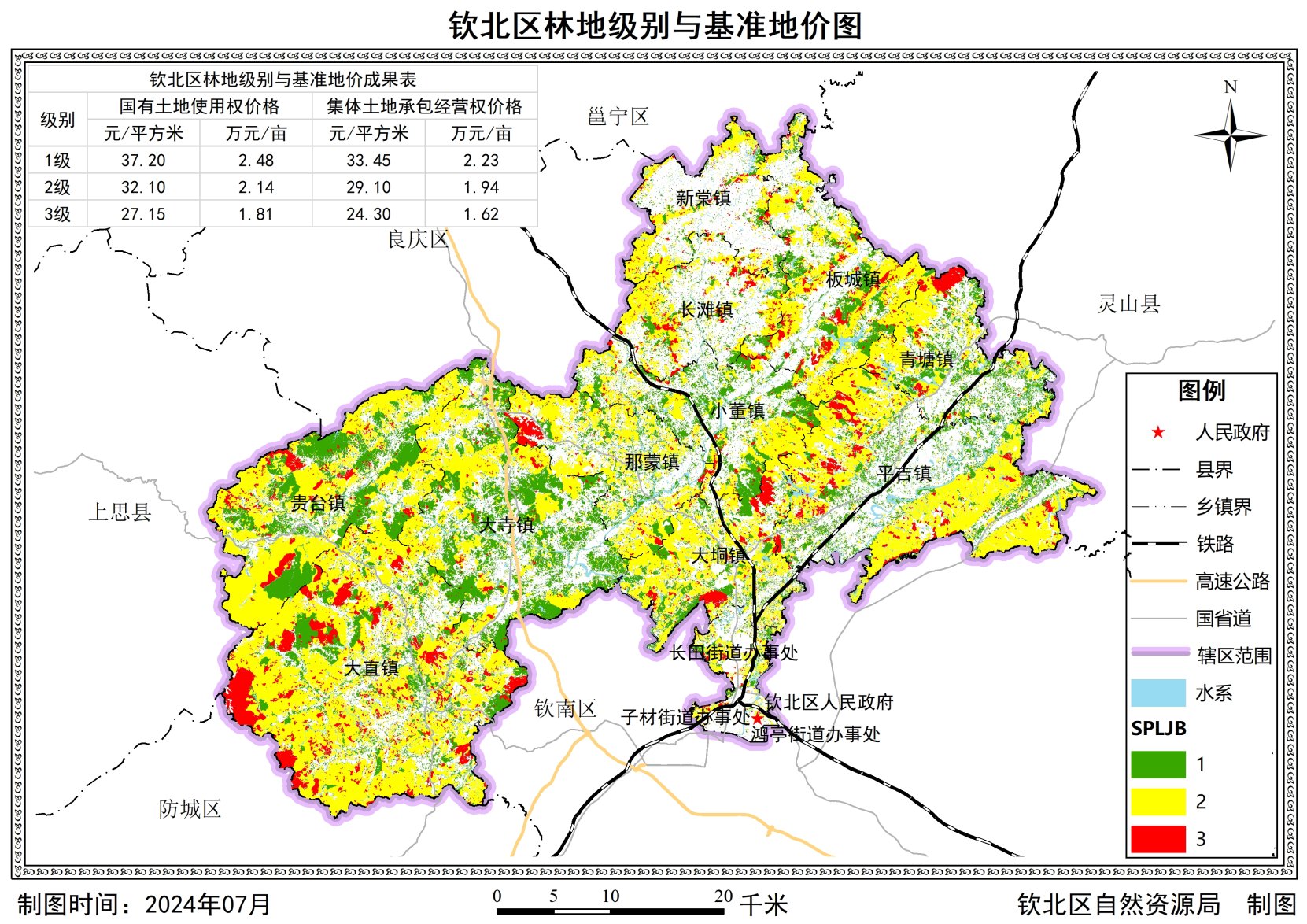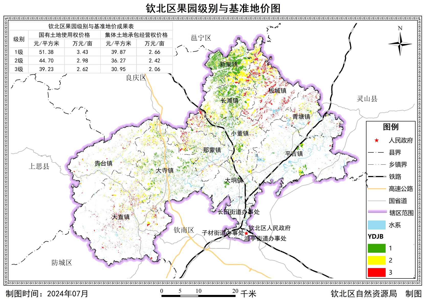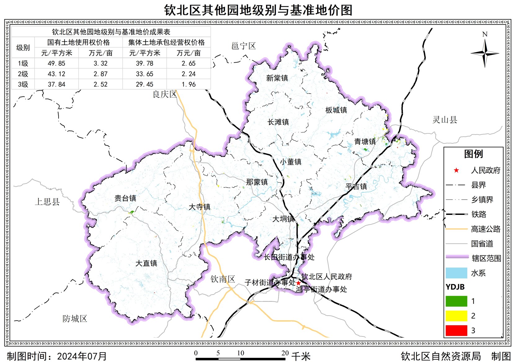 为加强自然资源保护与合理开发利用,促进生态产品价值实现,推进自然资源管理向数量、质量与生态管护并重转变,根据《自然资源部办公厅关于做好园地林地草地定级和基准地价制定有关工作的通知》(自然资办发〔2023〕399号)、《广西壮族自治区自然资源厅办公室关于做好园地林地草地定级和基准地价制定有关工作的通知》等相关文件要求,我区组织实施了园地林地草地定级与基准地价制定工作,成果于2025年3月6日通过了自治区自然资源厅专家组的评审验收,并于2025年7月21日取得自然资源厅的批复文件(桂自然资函〔2025〕1277号)。经研究决定,现将钦北区园地林地草地定级和基准地价成果予以公布,并自公布之日起开始实施。