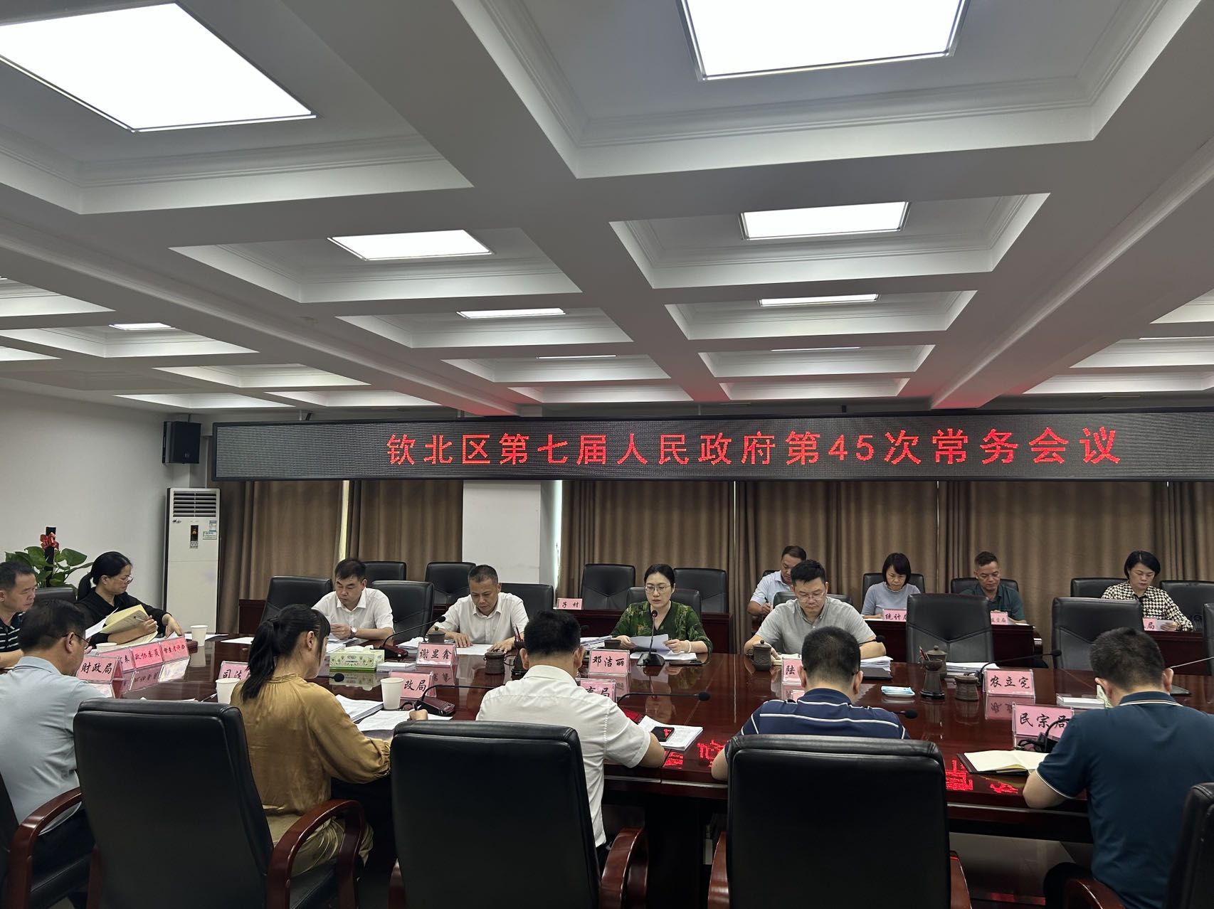2024年6月19日,邓洁丽主持召开钦北区第七届人民政府第45次常务会议。会议传达学习5月27日中共中央政治局会议精神等议题。