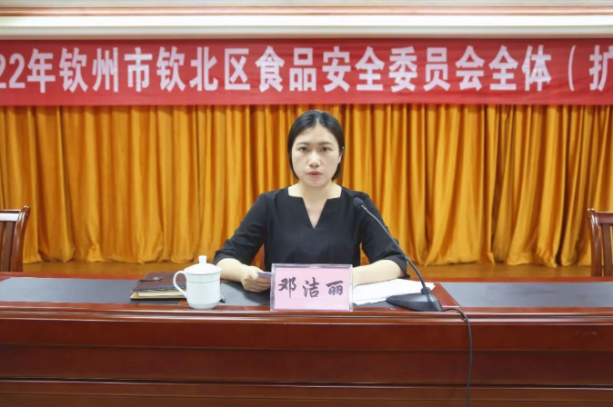 4月27日,2022年钦州市钦北区食品安全委员会全体(扩大)会议在区行政中心三楼中厅会议室召开,会议主要任务是贯彻落实国务院、自治区及市食品安全委员会全体会议精神,研究部署2022年钦北区食品安全工作。区长、区食安委主任邓洁丽出席会议并讲话,副区长、区食安委副主任谢显鑫出席会议,会议由副区长、区食安委副主任梁洪波主持。