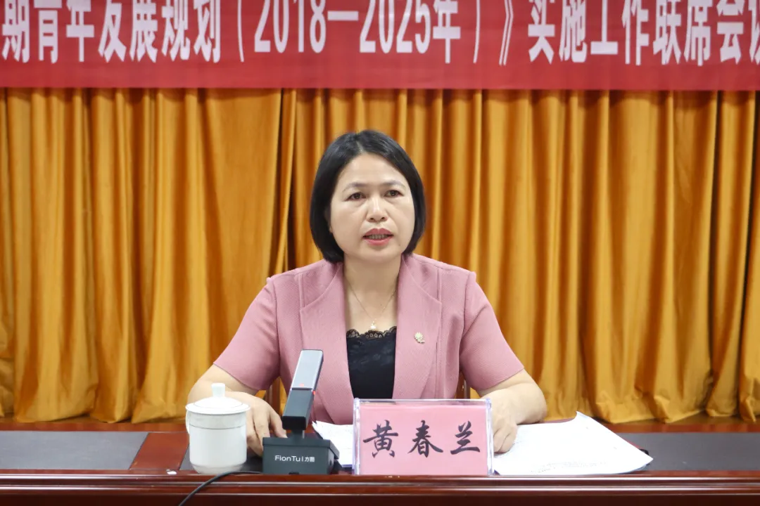 区委常委、统战部部长,区青年工作联席会议召集人黄春兰充分肯定了我区青年工作取得的成效,并就加强全区青年工作提出具体要求:一是提高政治站位,深刻认识做好新时代青年工作的重大意义;二是聚焦重点任务,扎实推动《规划》实施取得新成效;三是加强组织领导,确保《规划》实施各项任务落到实处。