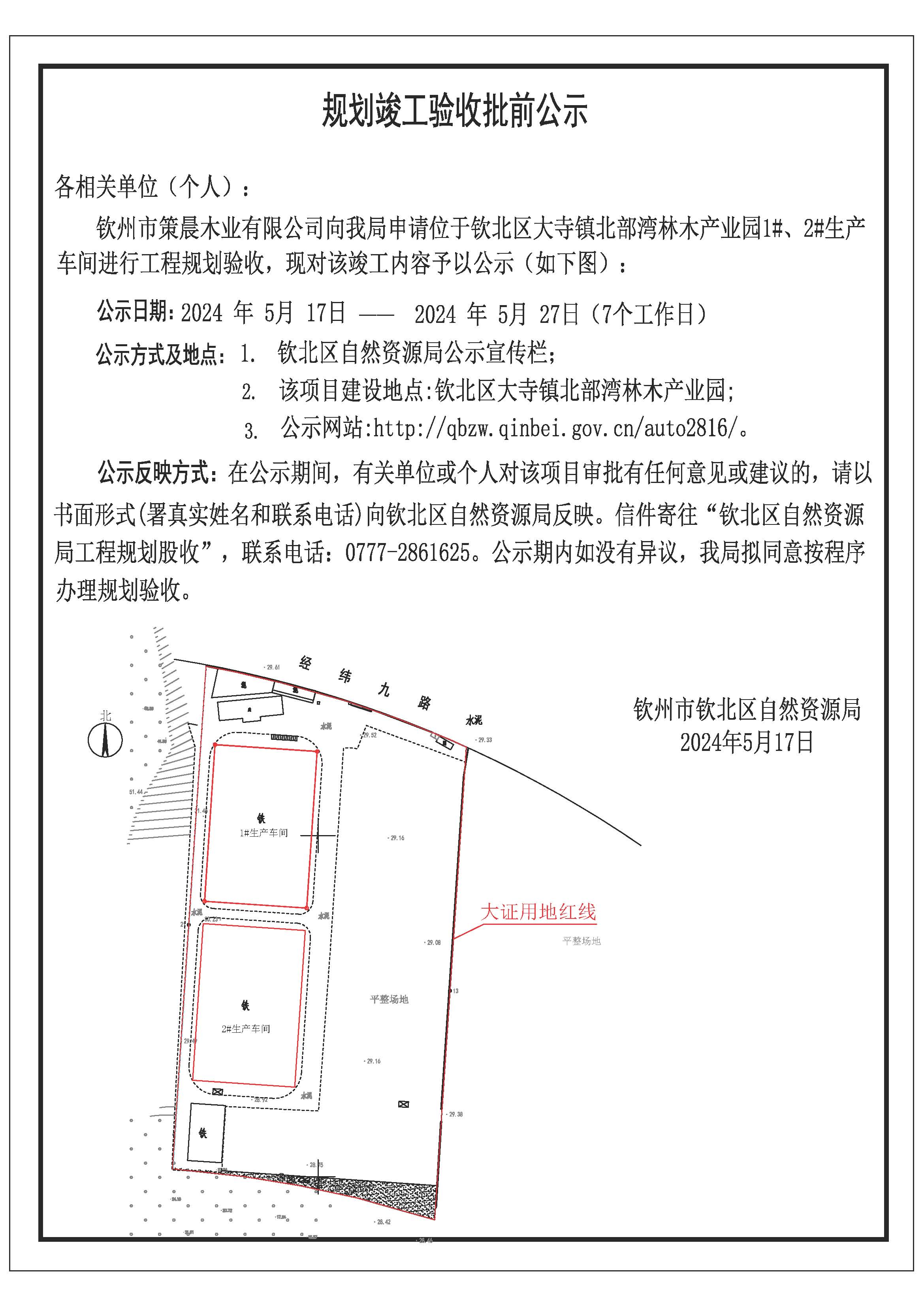 规划竣工验收批前公示(钦州市策晨木业有限公司)