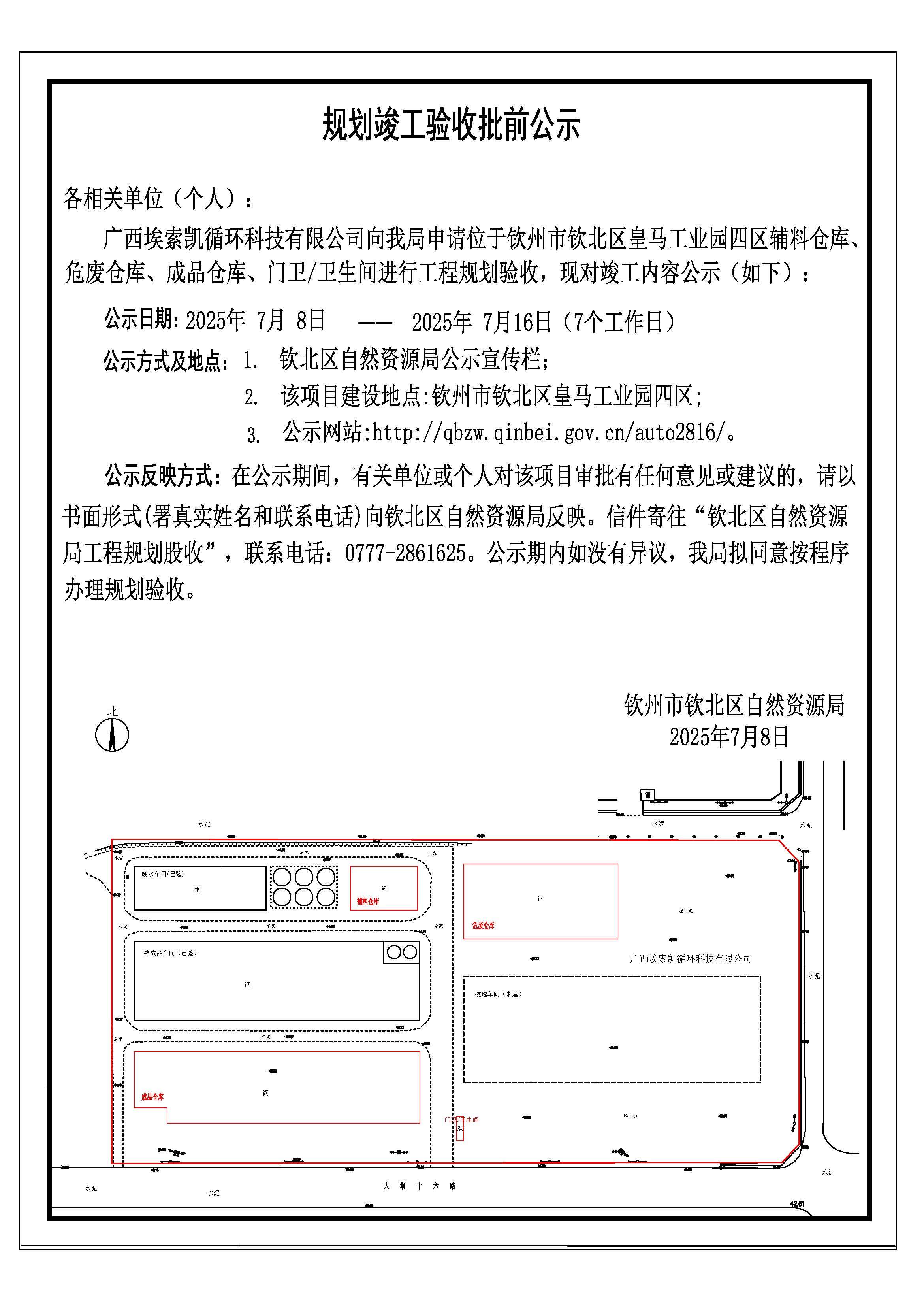 规划竣工验收批前公示(广西埃索凯循环科技有限公司)