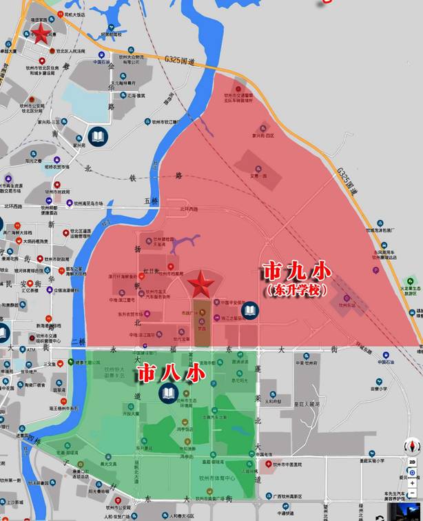 附件:钦州市第八小学和钦州市东升学校(钦州市第九小学)学区示意图