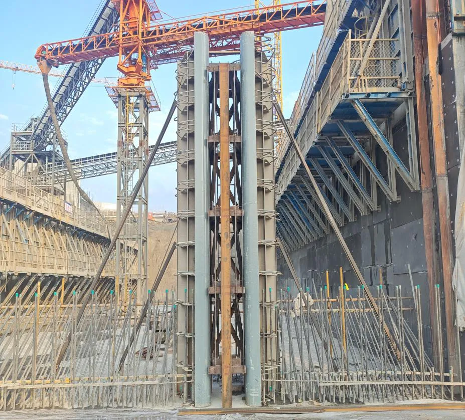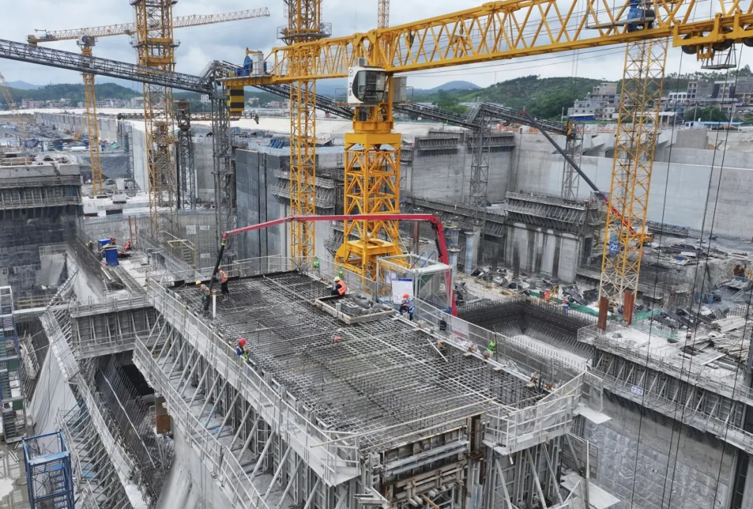 6月16日,平陆运河企石枢纽船闸闸室首个中墩顺利封顶。闸室中墩是连接上下闸首的关键组成部分,与闸首共同构成船闸的主体受力结构。同时,中墩分隔闸室,形成两条独立航槽,与闸首协同控制船舶有序进出。