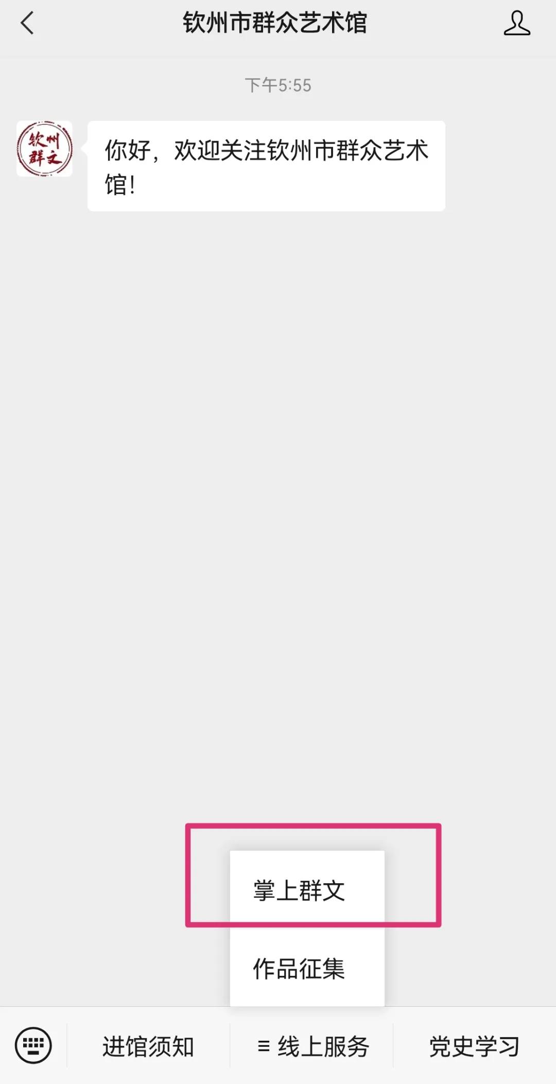 #1扫码关注“钦州市群众艺术馆”微信公众号