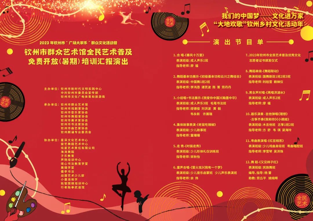 2023 年钦州市“广场大家乐”群众文化活动暨 钦州市群众艺术馆全民艺术普及免费开放(暑期) 培训汇报演出