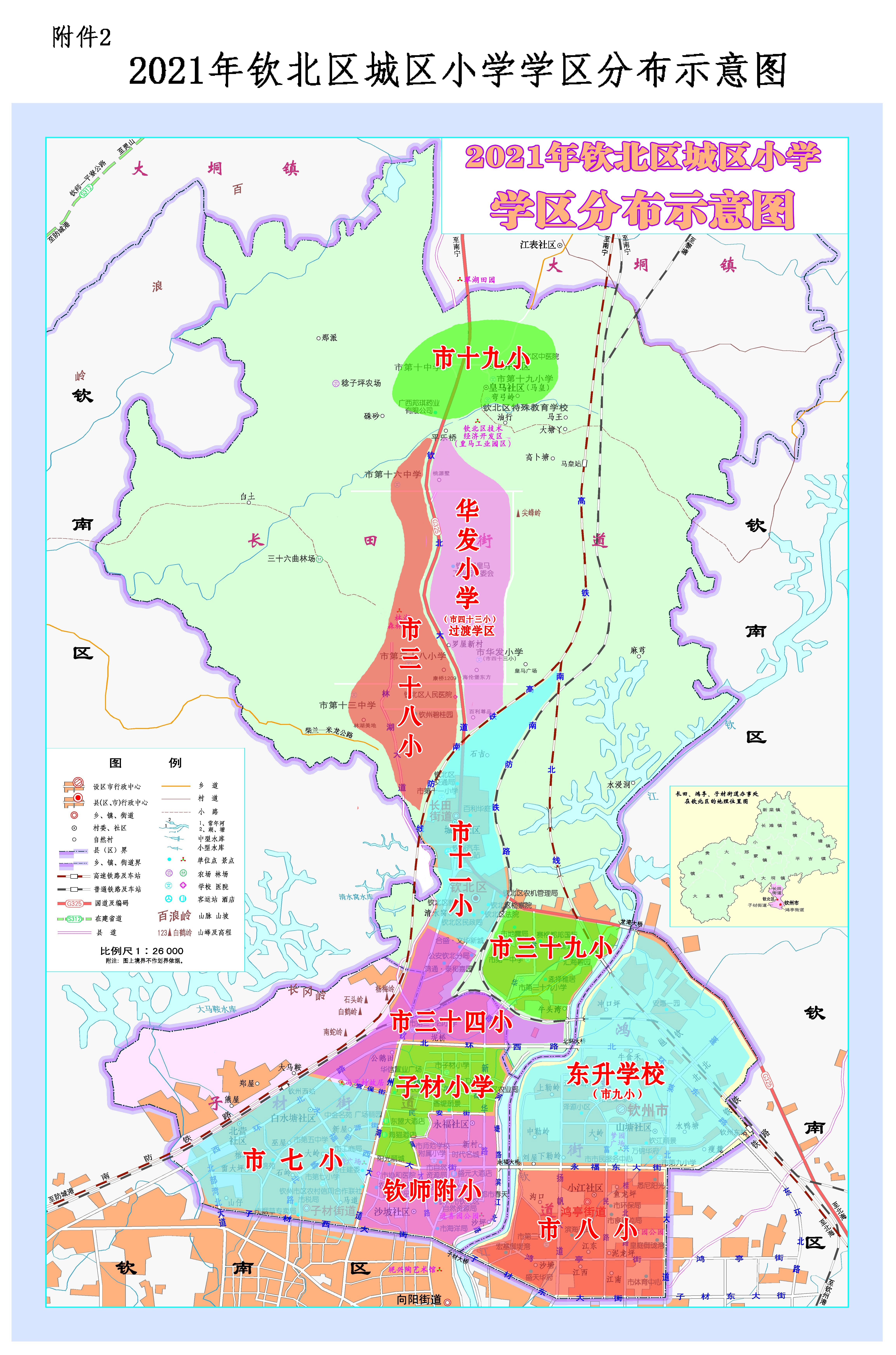 学区划分具体详见《2021年钦北区城区小学学区划分方案》(附件1)和《2021年钦北区城区小学学区分布示意图》(附件2)。