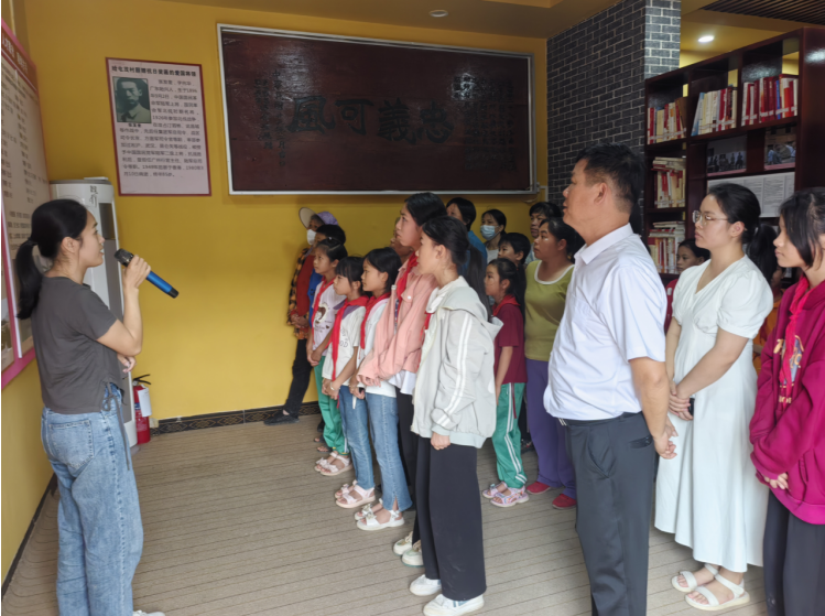 屯茂村村史馆志愿讲解员罗进梅在为参观者讲解屯茂历史