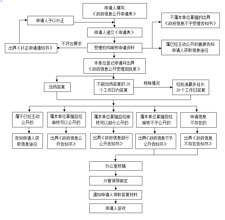 钦北区鸿亭街道办事处政府信息依申请公开流程图