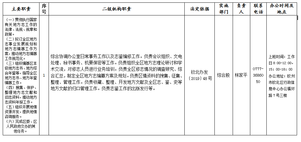 钦州市钦北区地方志编纂委员会办公室机构职能目录