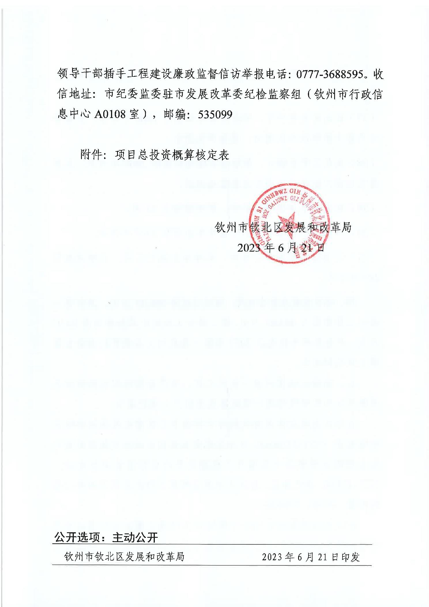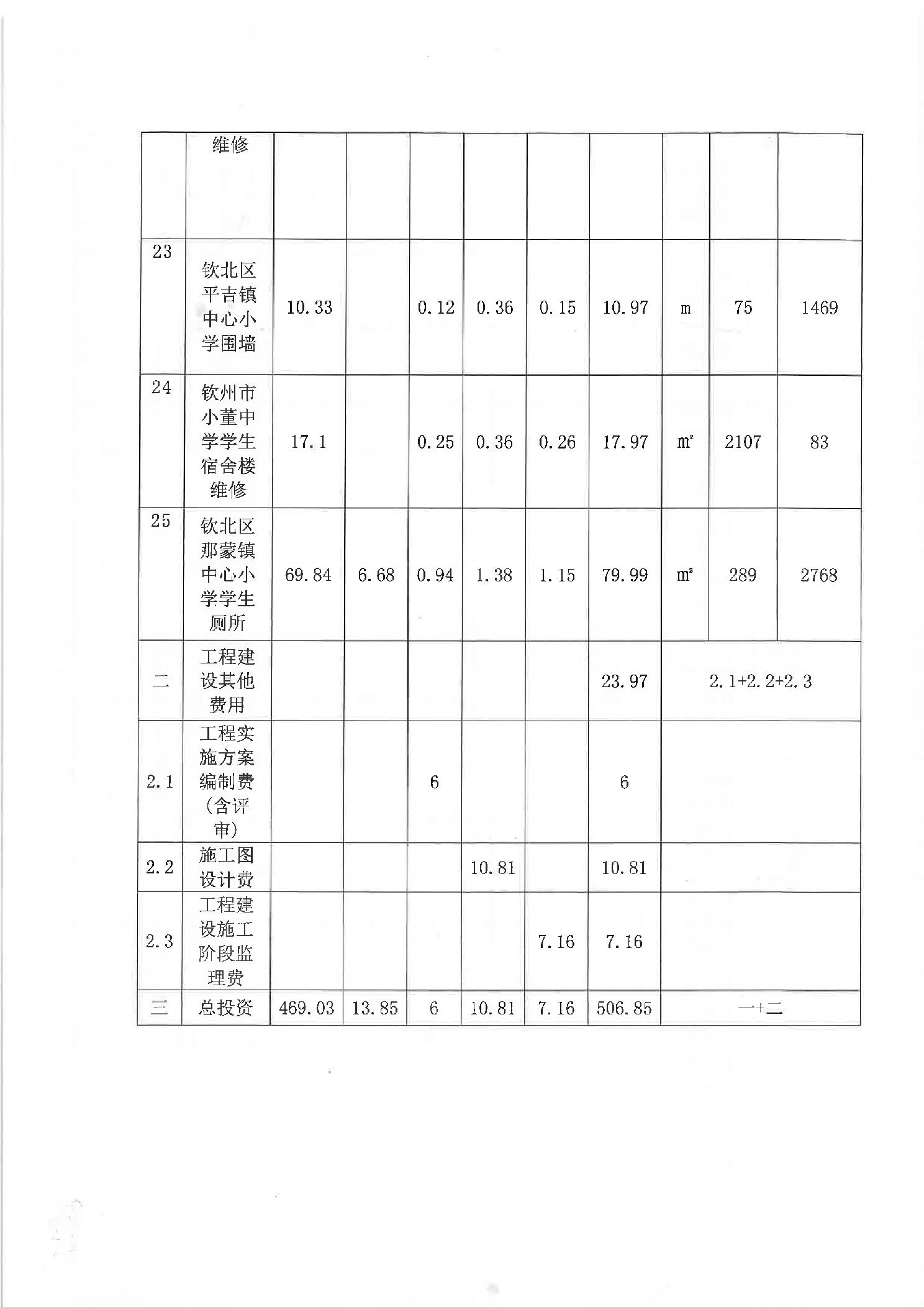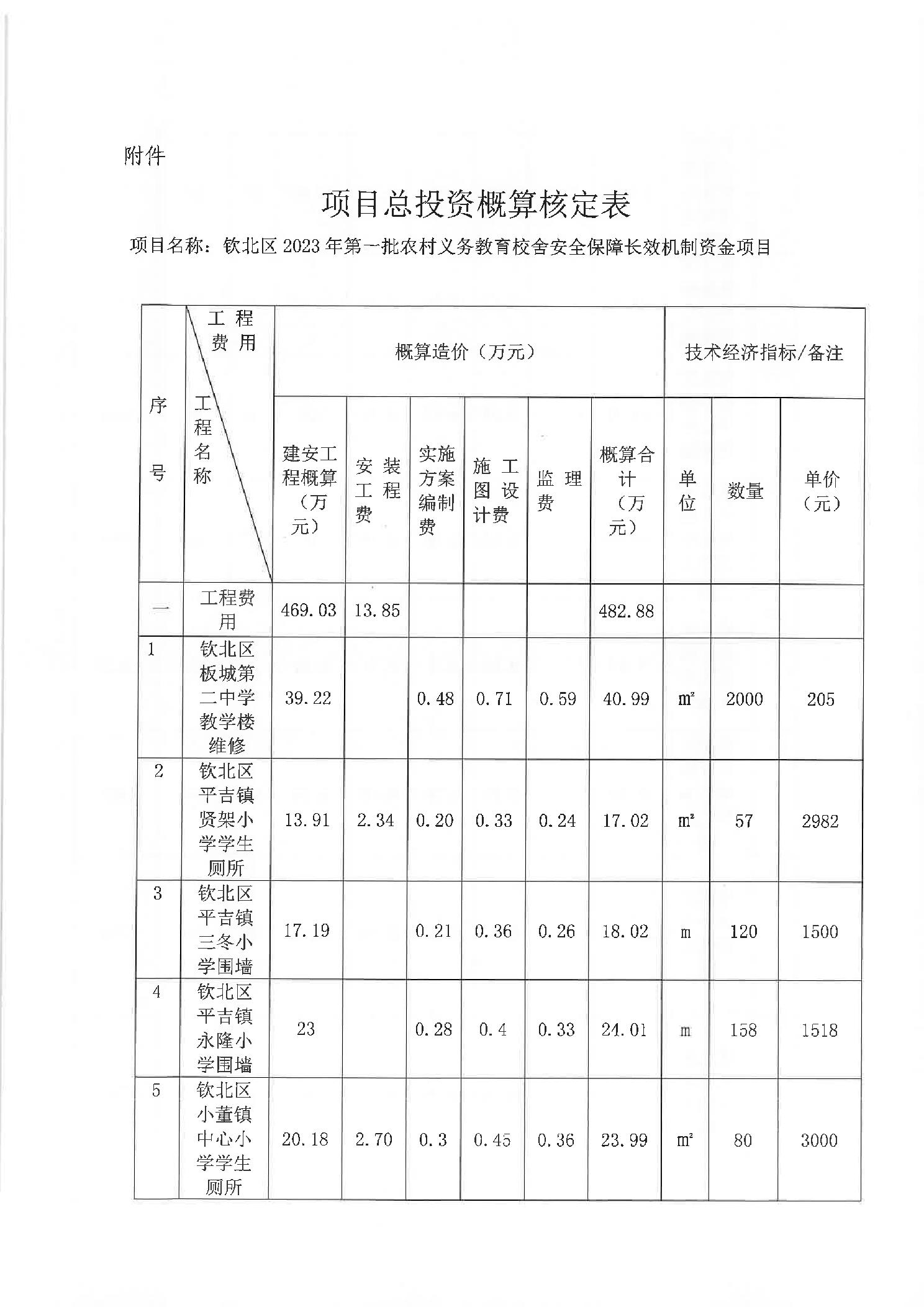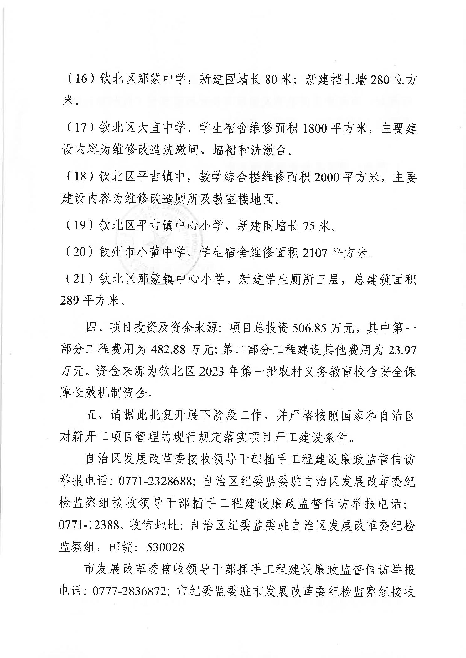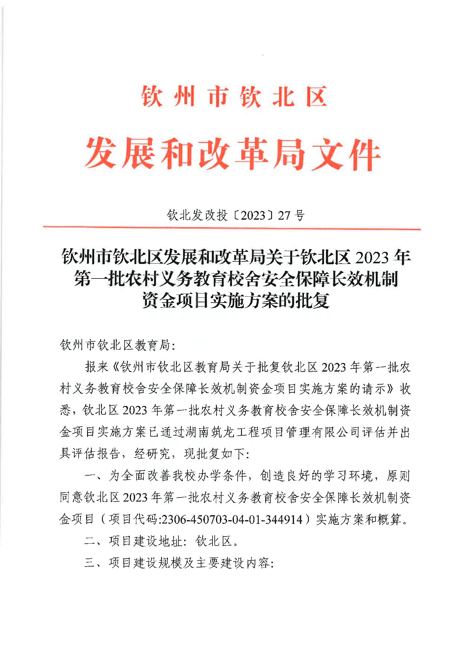 钦州市钦北区发展和改革局关于钦北区2023年第一批农村义务教育校舍安全保障长效机制资金项目实施方案的批复