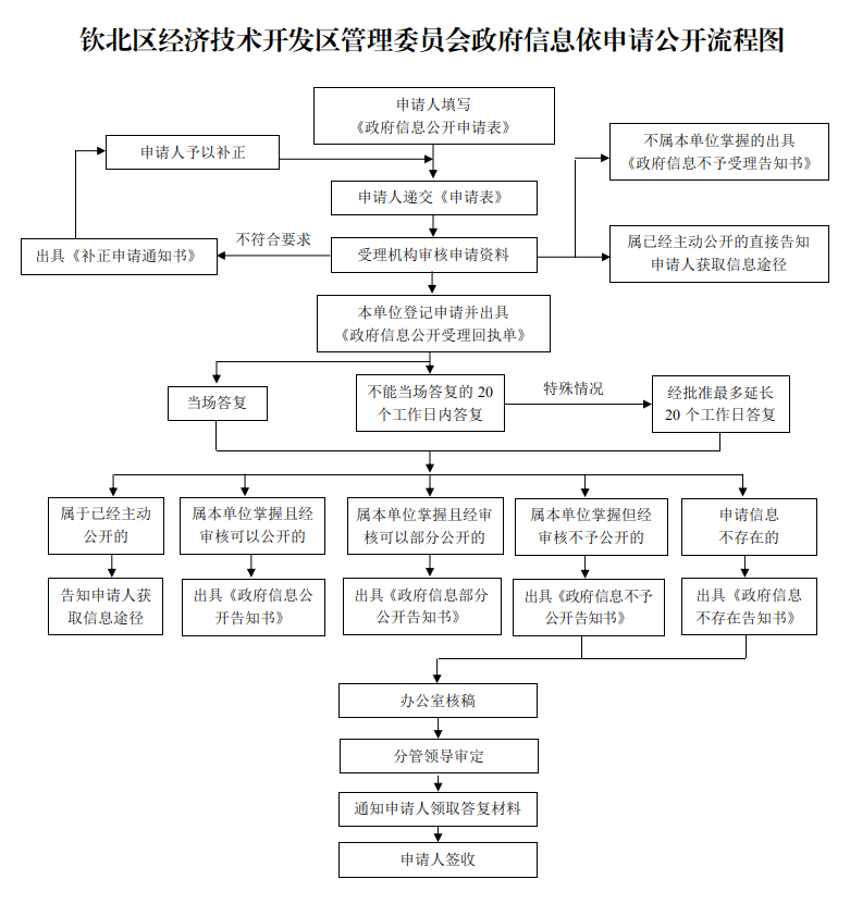 钦北区经济技术开发区管理委员会政府信息依申请公开流程图