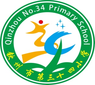 外形:整体图案为完美无缺的圆形,寓意和谐、团圆,象征钦州市第三十四小学全体教职员工团结奋进和学生的全面发展。