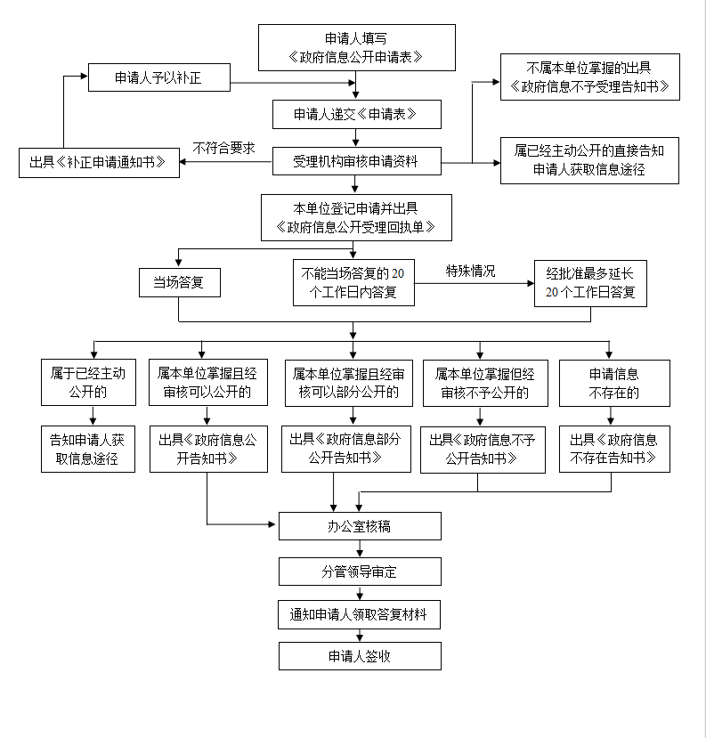 钦北区民政局政府信息依申请公开流程图