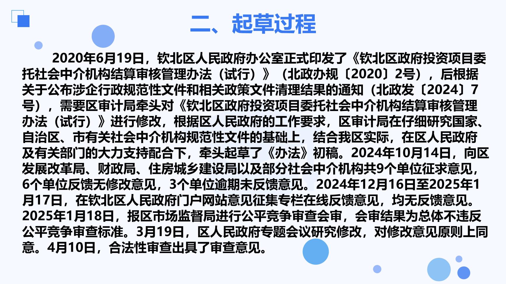 《钦北区政府投资项目委托社会中介机构结算审核管理办法》政策解读