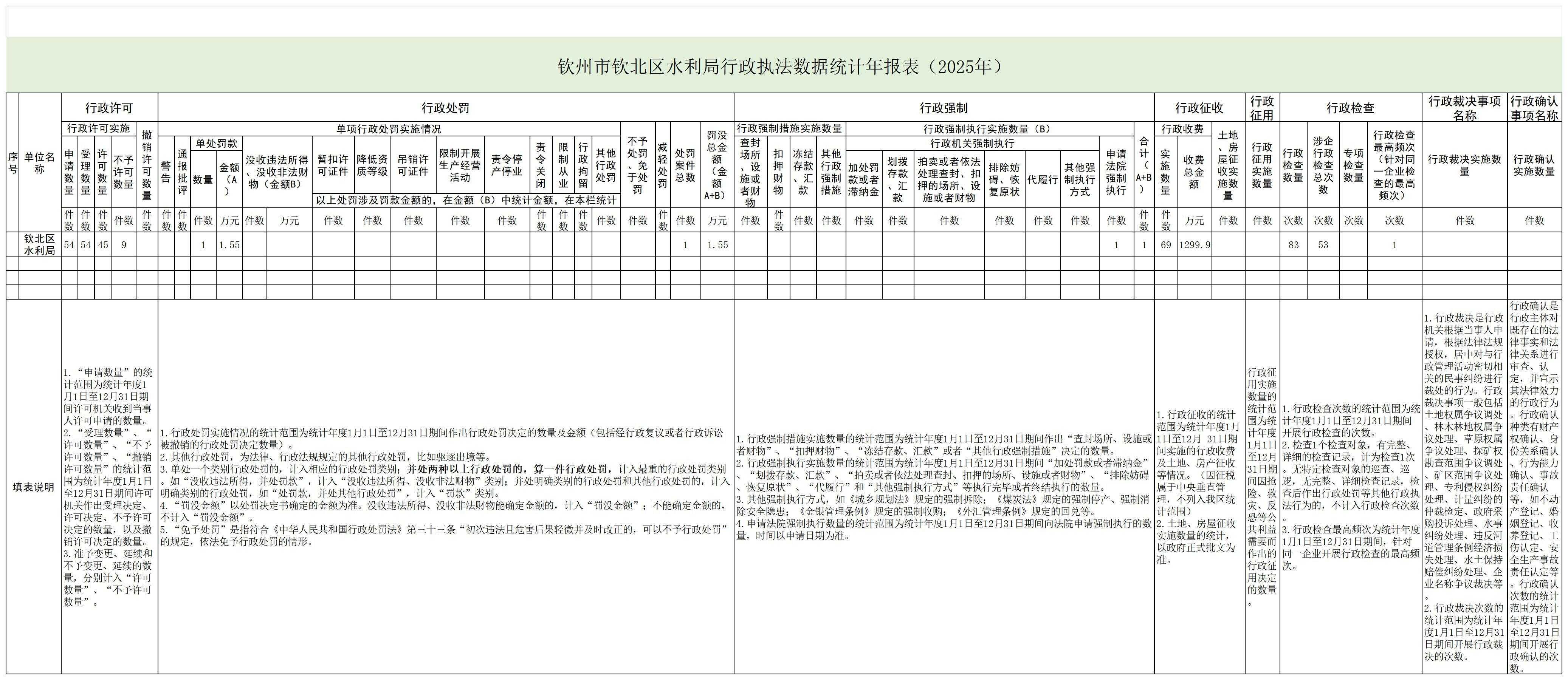 钦州市钦北区水利局2025年度行政执法数据统计年报