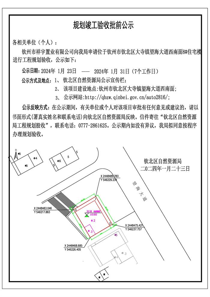 规划竣工验收批前公示(钦州市祥宇置业有限公司)