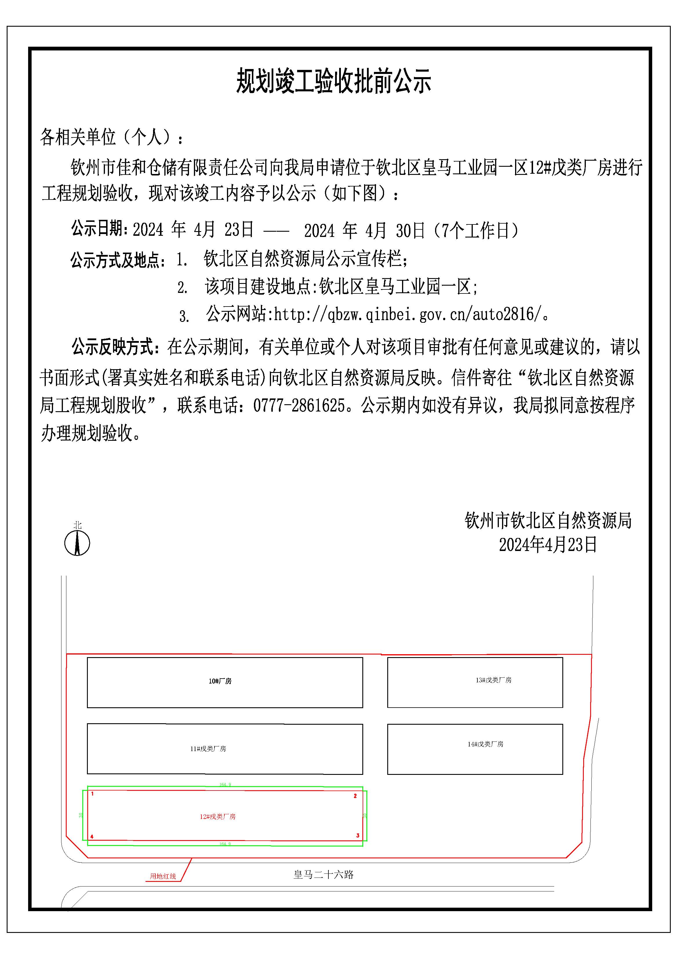 规划竣工验收批前公示(钦州市佳和仓储有限责任公司12#)