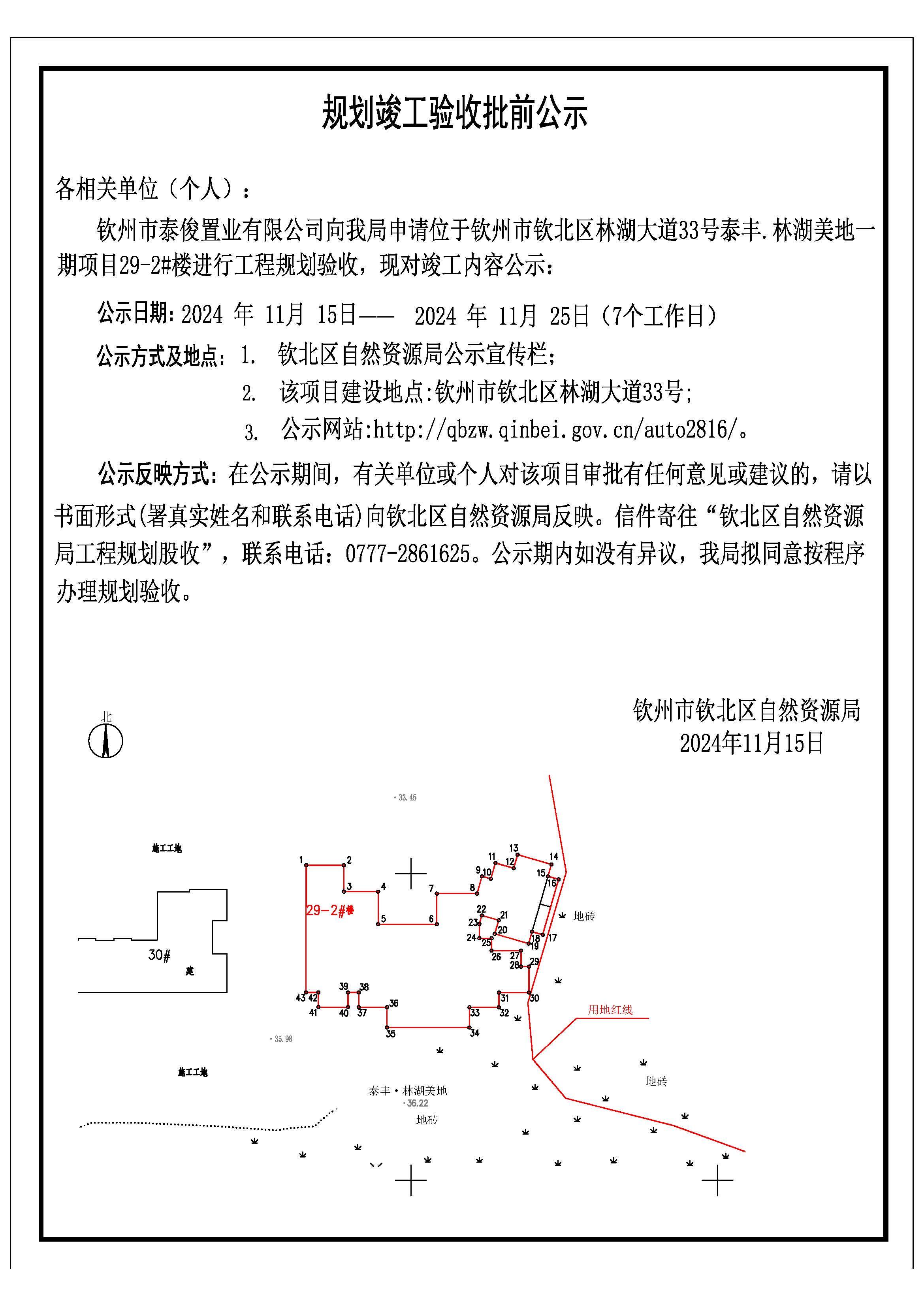 规划竣工验收批前公示(钦州市泰俊置业有限公司29-2#楼)
