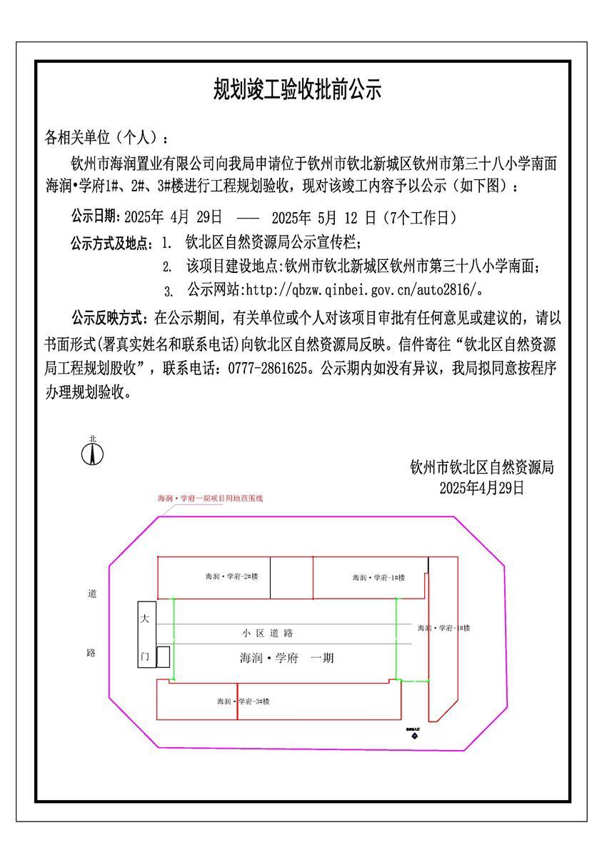 规划竣工验收批前公示(钦州市海润置业有限公司1#、2#、3#)