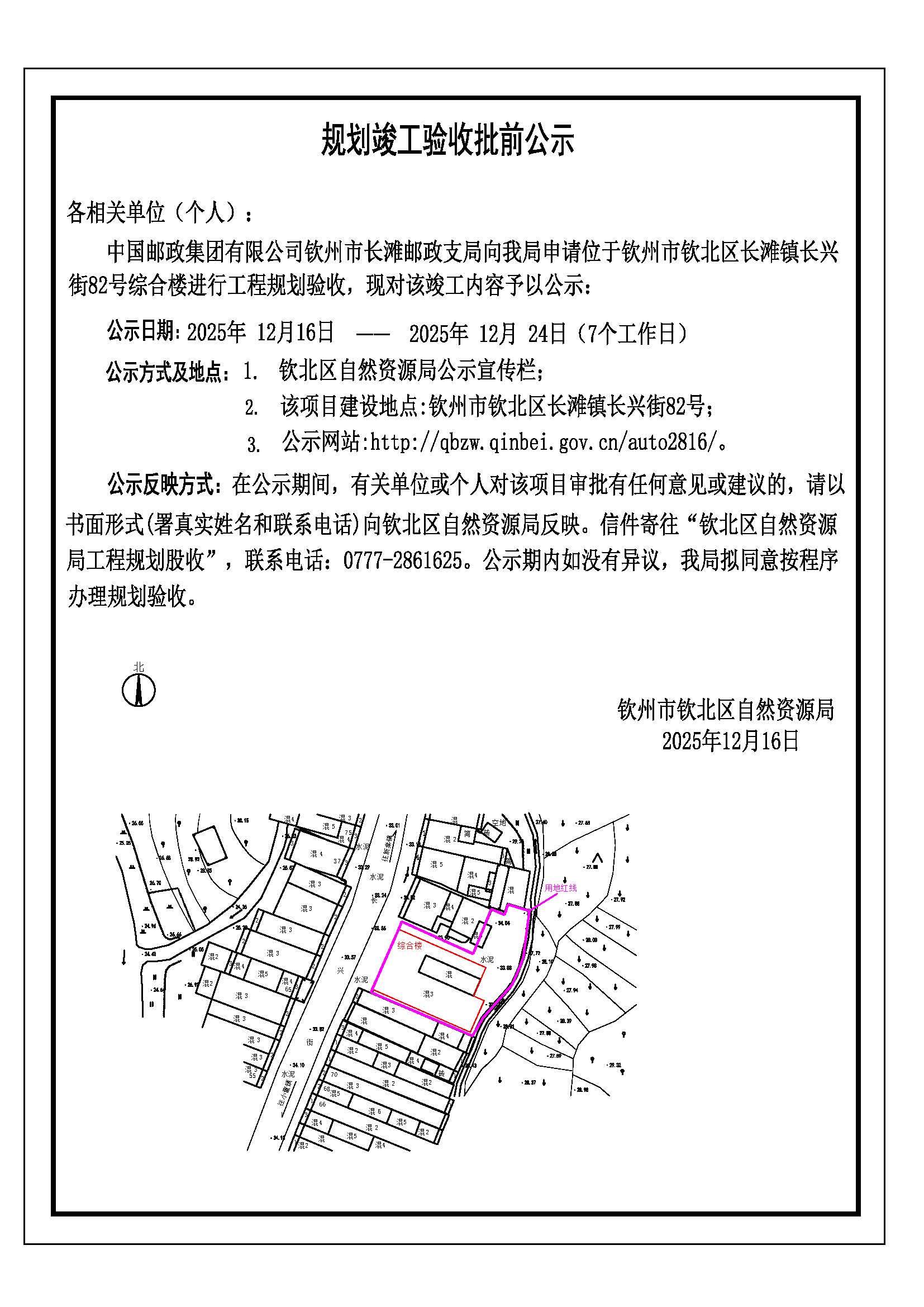 规划竣工验收批前公示(中国邮政集团有限公司钦州市长滩邮政支局)