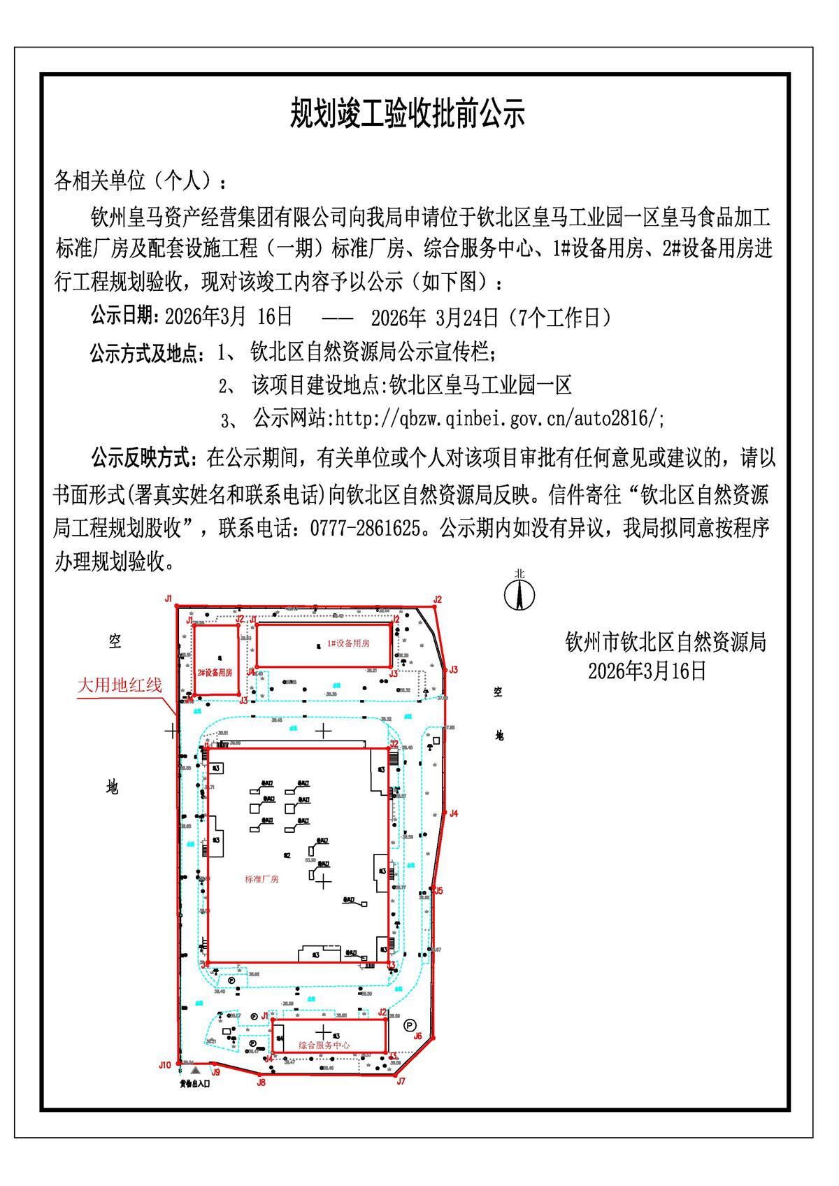 规划竣工验收批前公示(钦州皇马资产经营集团有限公司标准厂房等)