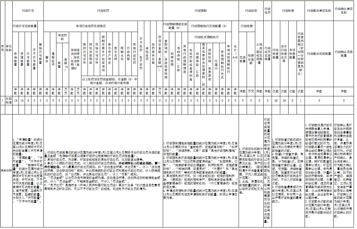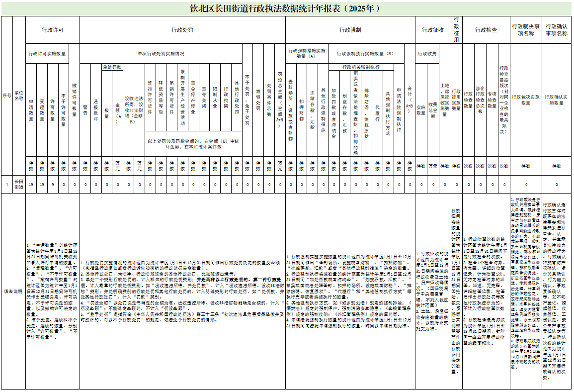 钦北区长田街道行政执法数据统计年报表(2025年)