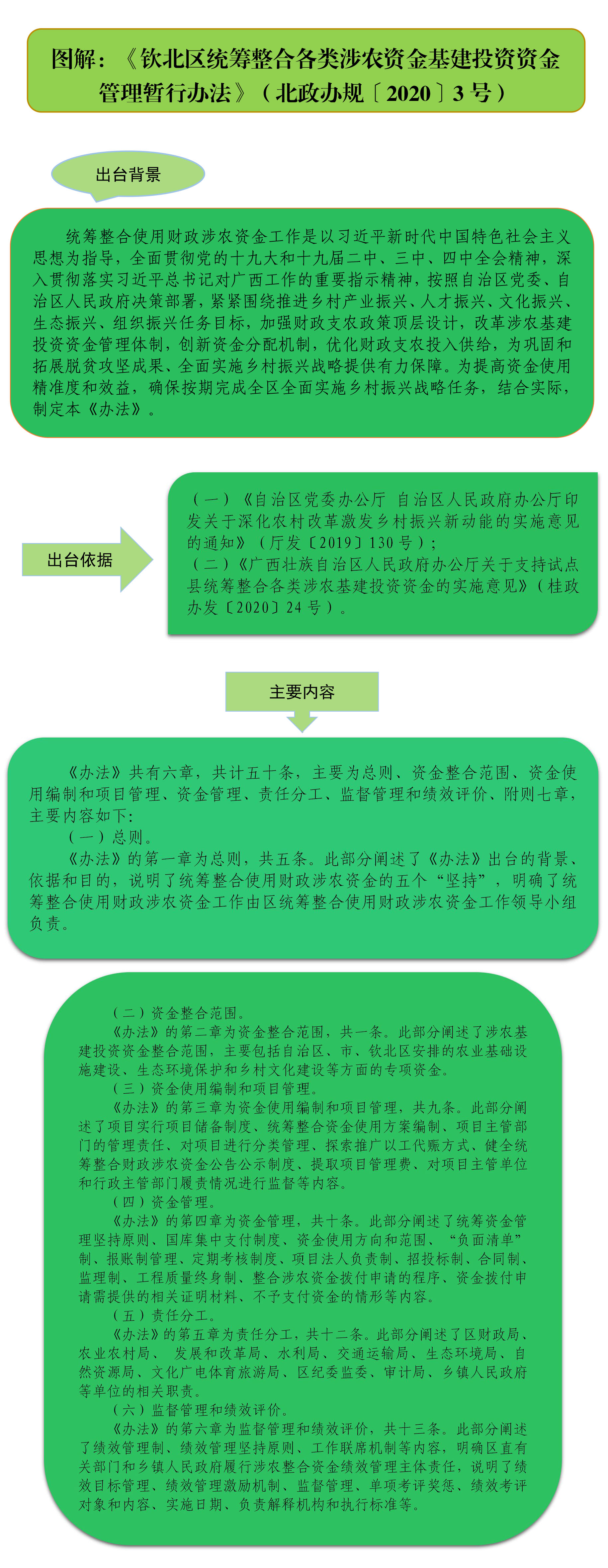 图解:《钦北区统筹整合各类涉农基建投资资金管理暂行办法》(北政办规〔2020〕3号)