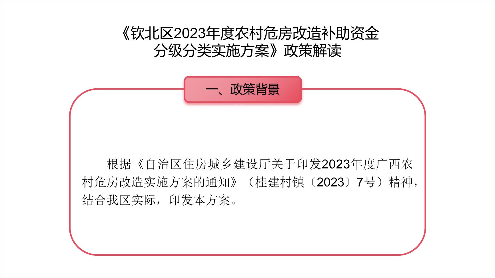 《钦北区2023年度农村危房改造补助资金分级分类实施方案》政策解读