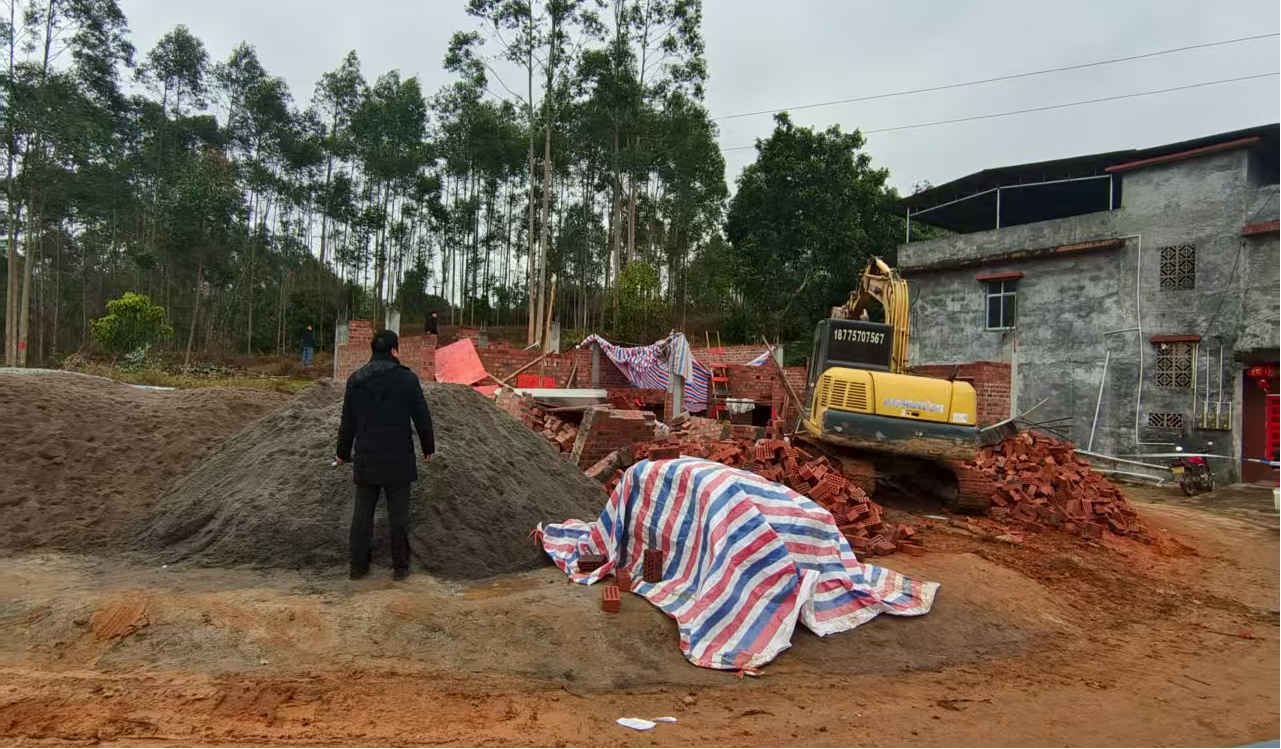 钦北区农业农村局工作人员现场督促拆除未按规定建设的住宅