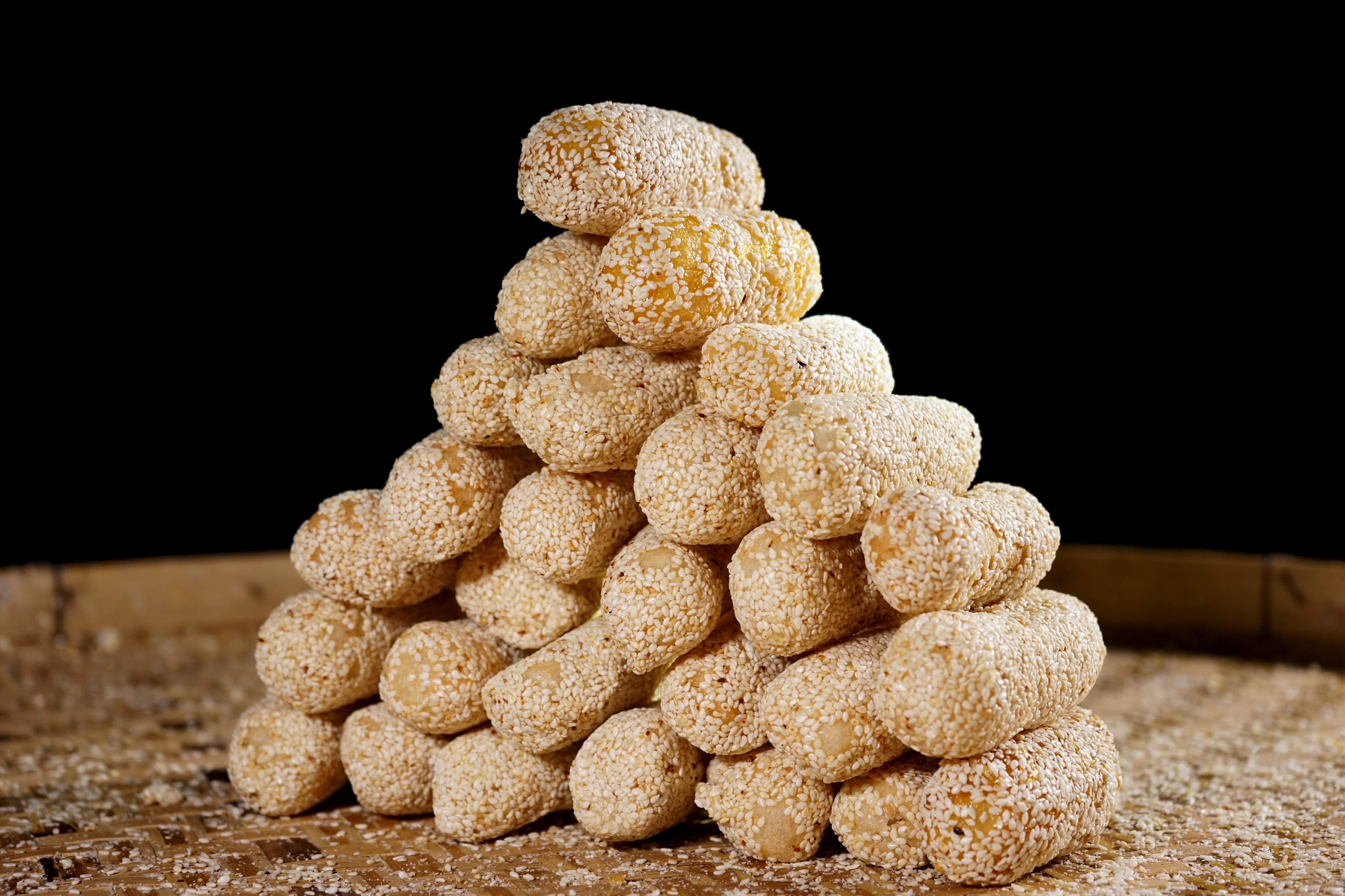 小董麻通分为黑麻通和白麻通两种,黑麻通用黑芝麻制作,白麻通则用白芝麻或退壳的黑芝麻制作,其中以白芝麻制作的麻通最佳。