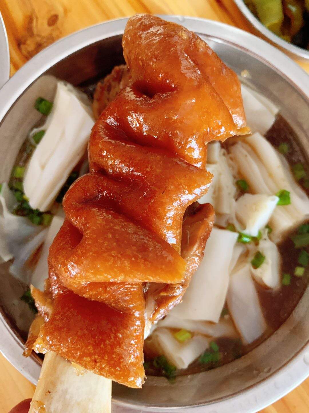 所谓"北方的面,南方的粉",在中国南方,尤其是西南地区有许多美食以粉为主料,猪脚粉则是其中之一。钦州猪脚粉是钦州的招牌美食,猪脚粉因以猪脚做佐料而得名,采用精心挑选的猪前蹄,先油炸至金黄,配以草果、茴香、陈皮、桂皮、丁香、胡椒、香叶、甘草、沙姜、八角等几十种名贵中药材熬制。猪脚色泽艳丽、有褶皱感,肥而不腻,脆而不硬,粉选当地特有的上好米粉或河粉,配以调制好的熟猪脚,加入多种佐料而成,吃起来别有一番风味。