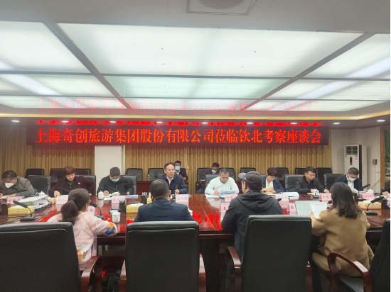 2023年2月28日,上海奇创旅游集团股份有限公司副总经理王岩一行到钦北区实地考察。期间,区委书记黄治华,区长邓洁丽分别会见了王岩一行,区委副书记冯确耀、副区长谢显鑫等区领导陪同实地考察并组织召开座谈会。区委办公室、区人民政府办公室、区发展改革局、区财政局、区自然资源、区农业农村局、区文旅局、区乡村振兴局、区招商促进局、皇马资产集团、平吉镇等单位相关负责人参加座谈。