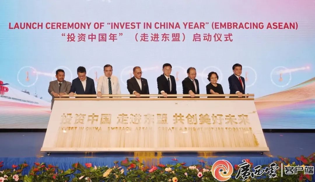 4月7日,自治区党委书记、自治区人大常委会主任刘宁与出席嘉宾共同为“投资中国年”(走进东盟)启动仪式暨中马“两国双园”—马中关丹产业园十周年庆祝活动启幕。