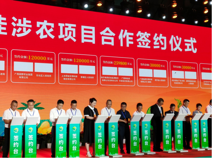 黄如龙(左6)与广西田野农业集团有限公司(左5)在大会上现场签约